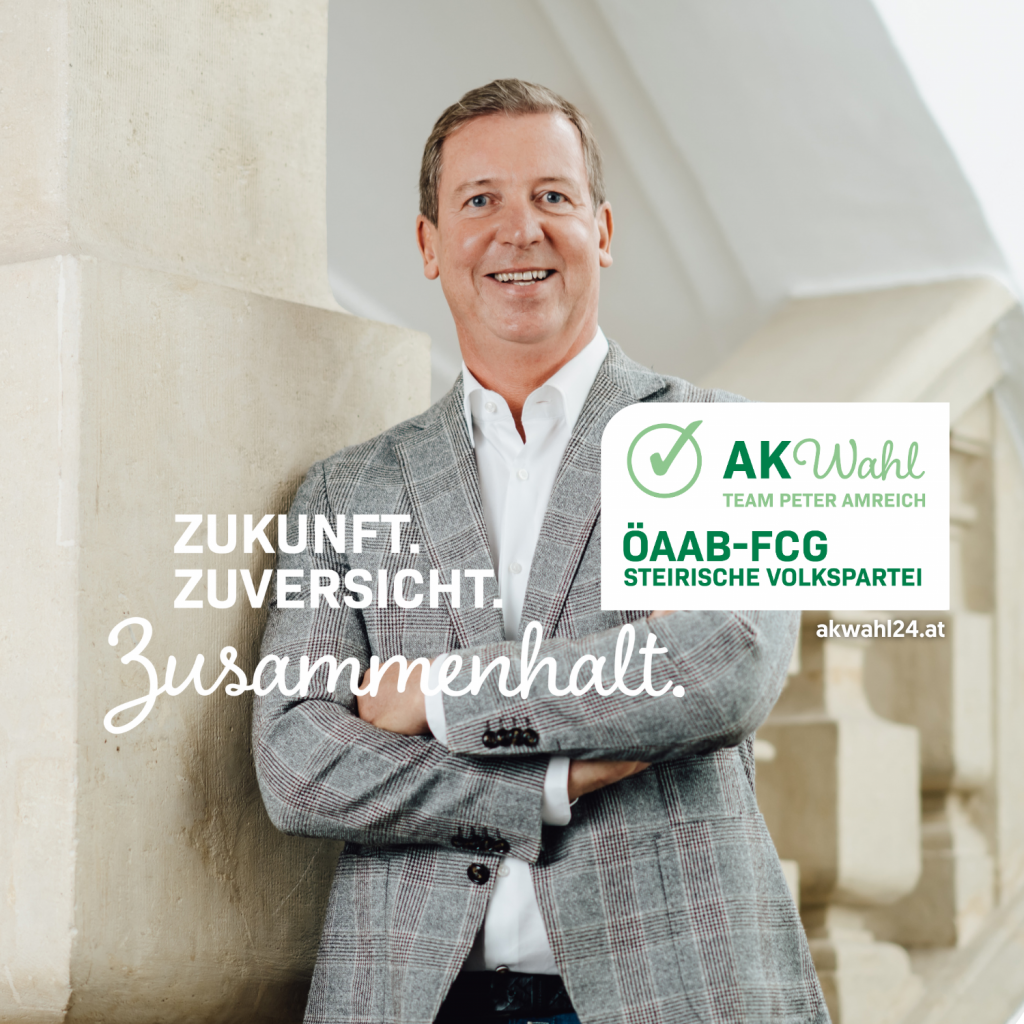 Spitzenkandidat Peter Amreich und das Team ÖAAB-FCG-Steirische Volkspartei stehen in Zeiten der politischen Extreme für ZUSAMMENHALT und ZUVERSICHT.