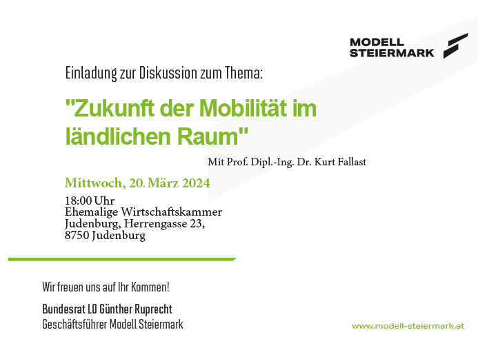 Wir bitten um Anmeldung unter office@modell-steiermark.at