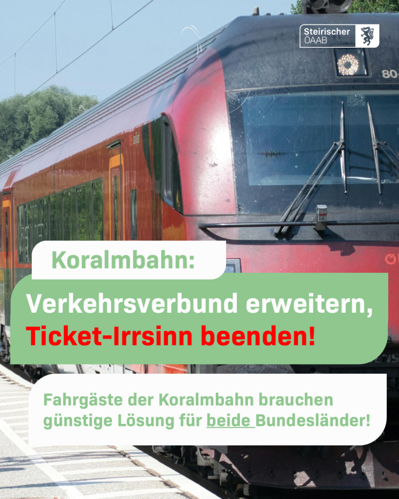 Der ÖAAB setzt sich dafür ein, dass die Koralmbahn nicht nur ein technisches, sondern auch ein tarifliches Erfolgsprojekt wird, das Fahrgästen aus beiden Bundesländern zugutekommt!