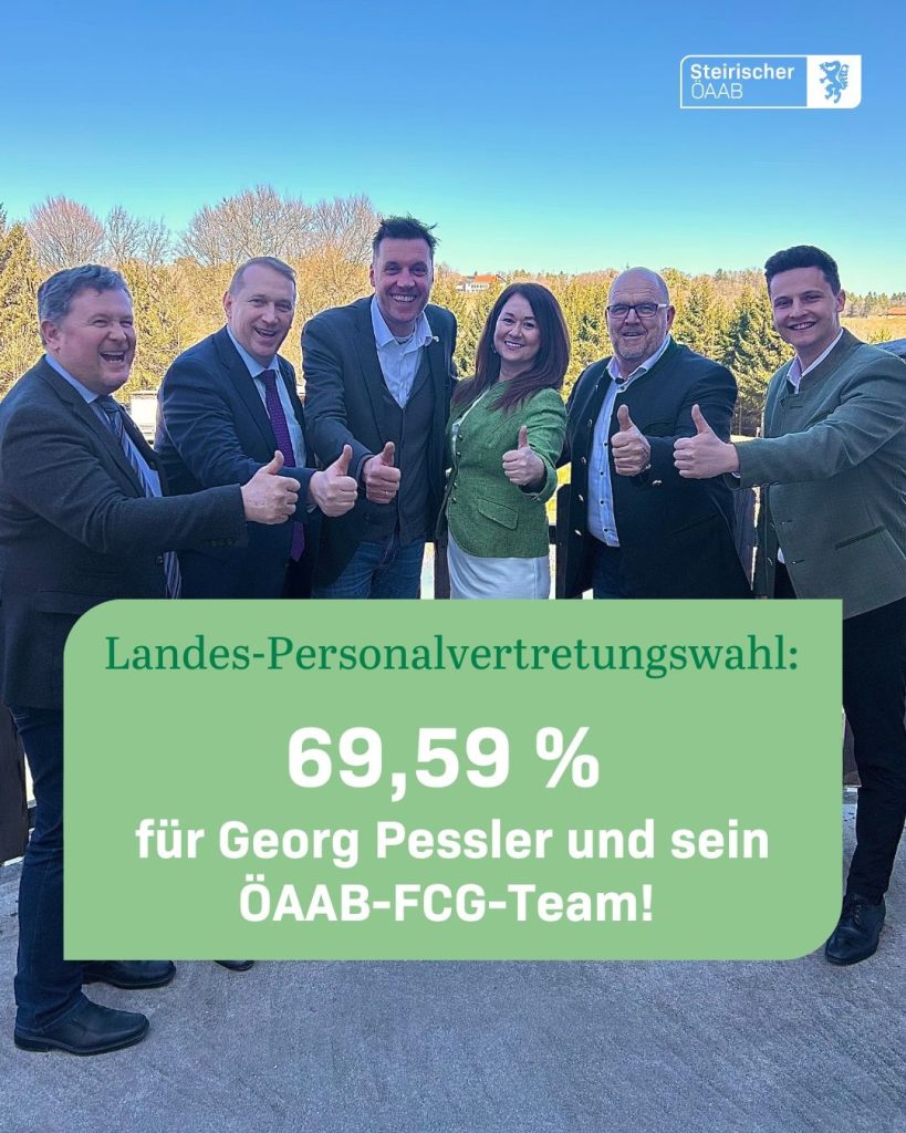 Rund 7.500 Landesbedienstete wählten diese Woche ihre Personalvertretung. LPV-Obmann Georg Pessler und sein ÖAAB-FCG-Team wurden für den Einsatz in den letzten Jahren belohnt und dürfen sich über 69,59% der Stimmen freuen!