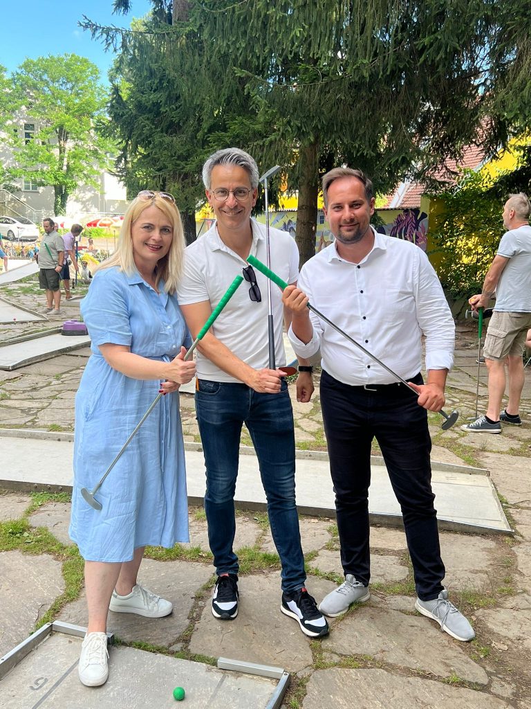 Rechtzeitig zu Ferienbeginn veranstaltete der ÖAAB-Geidorf das alljährliche, schon zur Tradition gewordene, Minigolfturnier in der Heinrichstraße. Zahlreiche motivierte Teilnehmerinnen und Teilnehmer ließen es sich mit prominenter Unterstützung durch unseren Sportstadtrat Kurt Hohensinner und VP Stadtparteigeschäftsführer Markus Huber nicht nehmen, bei sommerlichen Temperaturen den Minigolf-Schläger zu schwingen und die 18 Bahnen ausgesprochen erfolgreich zu absolvieren. Zur Stärkung gab es gratis Eis und Getränke und nach der Siegerehrung (allen voran sei unser Sieger Christian Jelesic aus Andritz! erwähnt) mit zahlreichen Sachpreisen ging es zum gemütlichen Ausklang in den Bierbaron, wo auch die Fußball-EM nicht zu kurz kam. Herzlichen Dank an Alle!