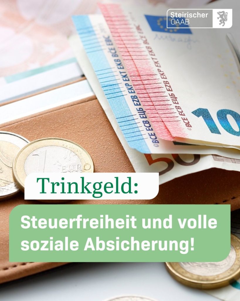 Gleichzeitig hat die Bundesregierung die Trinkgeldpauschale, also die Grundlage für die Sozialversicherungsabgaben, neu geregelt und österreichweit vereinheitlicht – ein großer Erfolg für den ÖAAB und die ÖAAB-FCG-AK-Fraktionen.